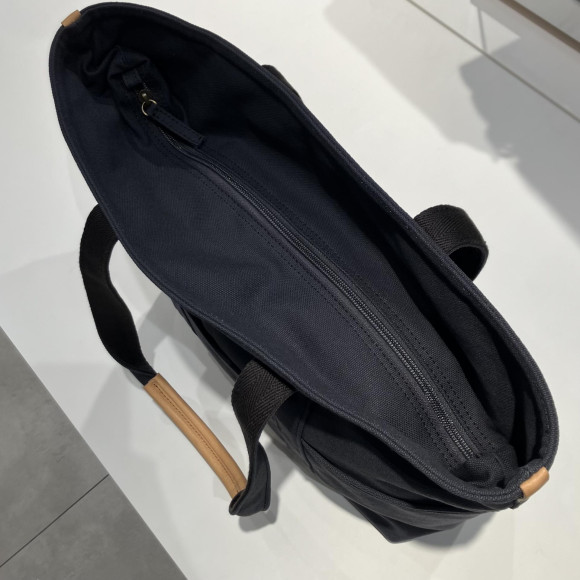 口部分にはファスナーが付き中を閉じることが出来、更に荷物が増えた際にはファスナーを閉じることで容量を増やすことが出来る実用性にも優れた新作トートバッグです。