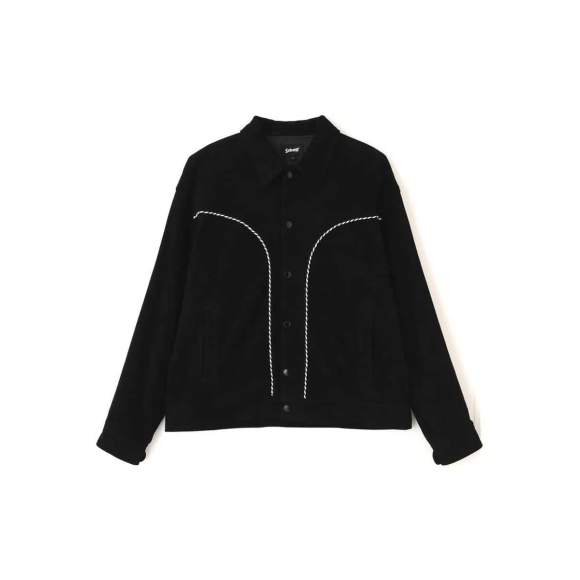 オリジナルのツイストテープを贅沢にあしらったゴートスウェードのウエスタンジャケット。