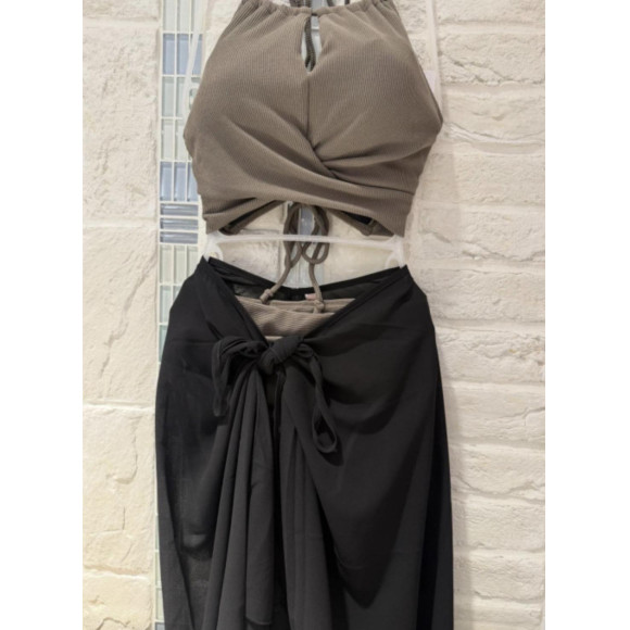 胸元のスリットとバックデザインでヘルシーな肌見せを演出☆
