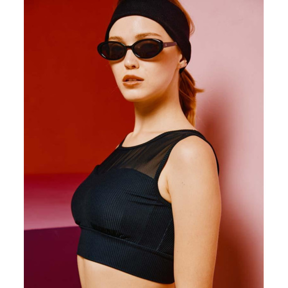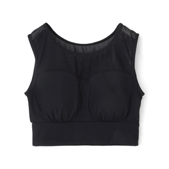 リブ素材とシアー素材の切り替えでヘルシーな肌見せが楽しめるブラトップ。