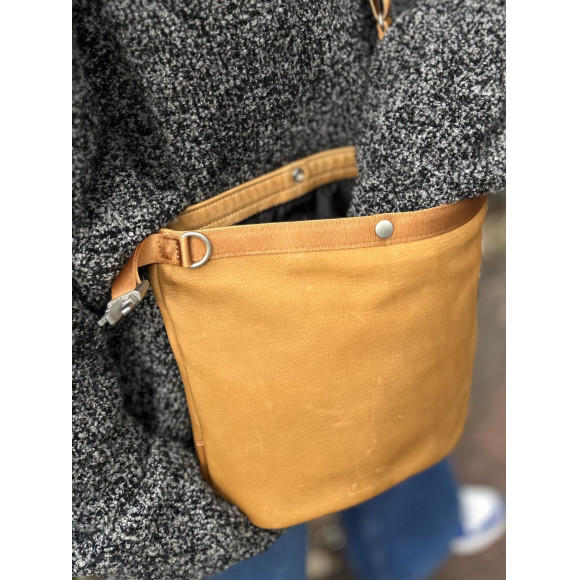 防水性を備えながらソフトに仕上げたレザーに、光沢感のあるナイロンテープを組み合わせたユニセックスデザインのレザーバッグシリーズ。