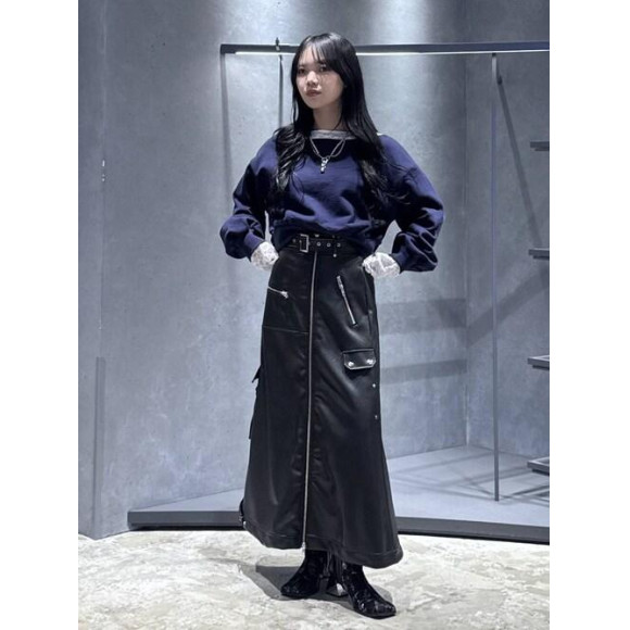□ライダースのようなデザインを取り入れたエッジのきいたレザースカート