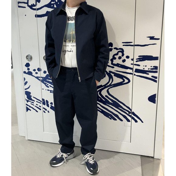 昨日ご紹介のブルゾンと同素材を使用した定番コットンパンツ「JAMI」からも新色ネイビーが登場。