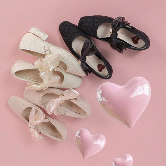 シアーリボン×ハートで可愛さをぎゅっと詰め込んだストラップパンプス。