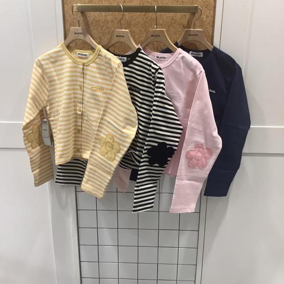 定番人気のエルボーパッチシリーズのカーディガン今季は人気のデイジー柄を落とし込んだデザイン。