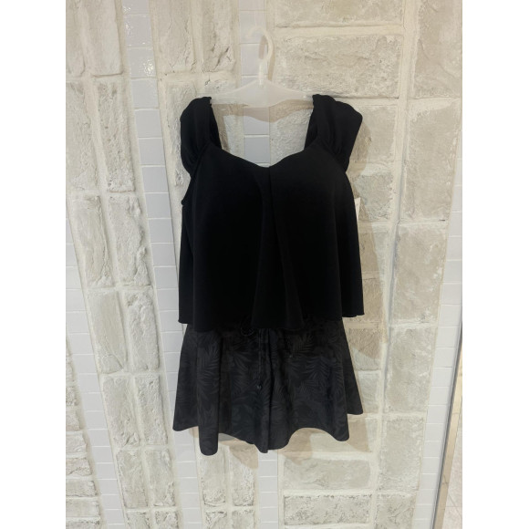アウターライクな表面変化素材を使用したワンピース風のセパレート水着。