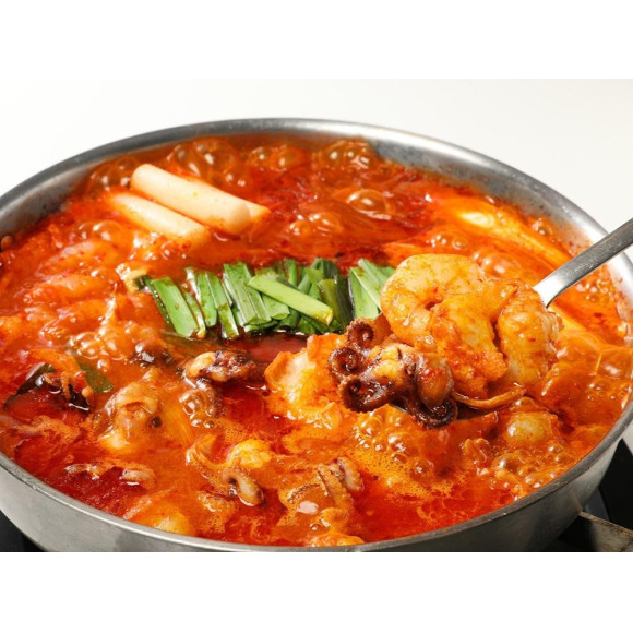 それぞれの旨みが溶け出した特性旨辛スープとプリプリ、コリコリの海鮮の食感をお楽しみください。