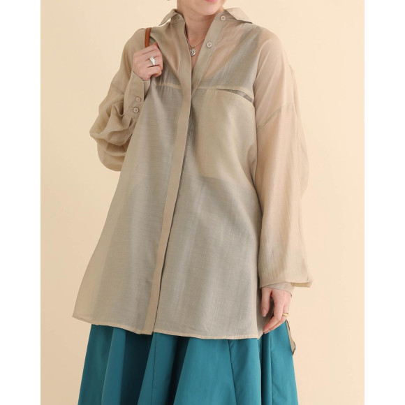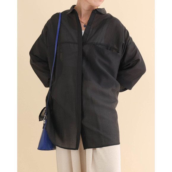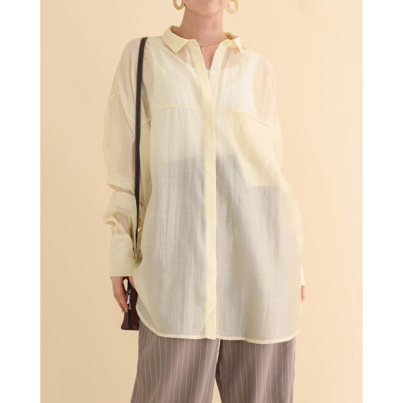 春風とともに着る、リラクシングシャツ。シアー素材の繊細なやわらかさや、肩の落ちたオーバーサイズ感が、スタイリングに旬な趣をプラスしてくれるアイテムです。