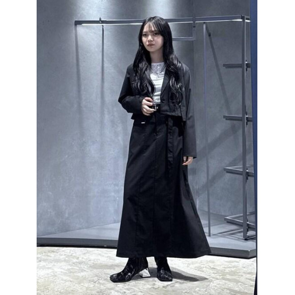 □ナローシルエットで縦のラインを強調することで、スタイルアップ効果抜群