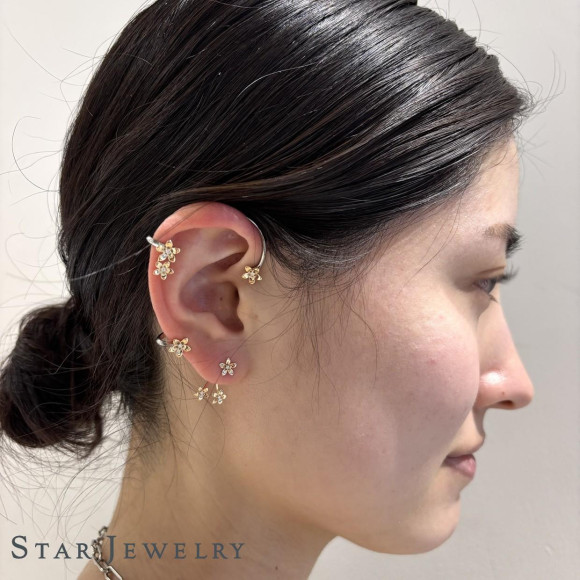 地金の花の中心にダイヤモンドを「星留め」でセッティングし、まるで星のブーケのように華やかに輝きます♬