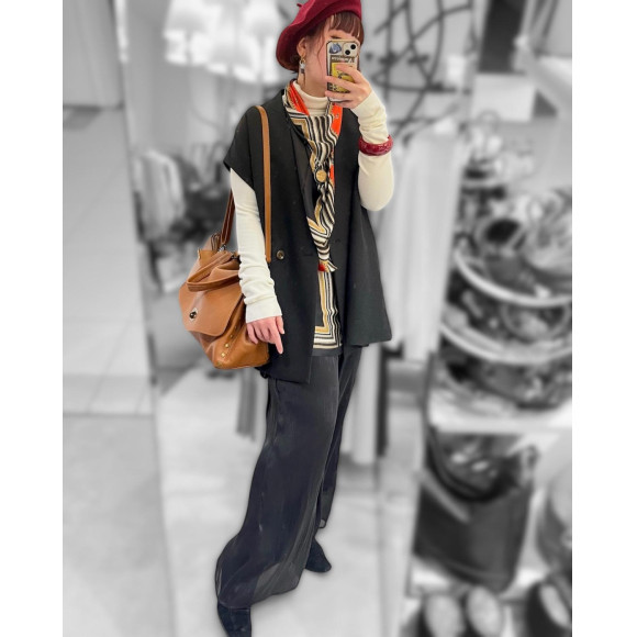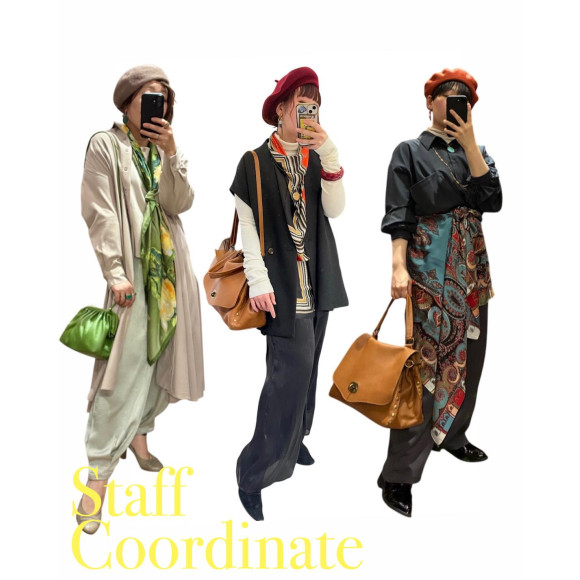 春に向けて、スタイリングがシンプルになる時に活躍するのがスカーフ。ということで今日は、大判のスカーフを使った、スタッフおすすめのスタイリングをご紹介します。