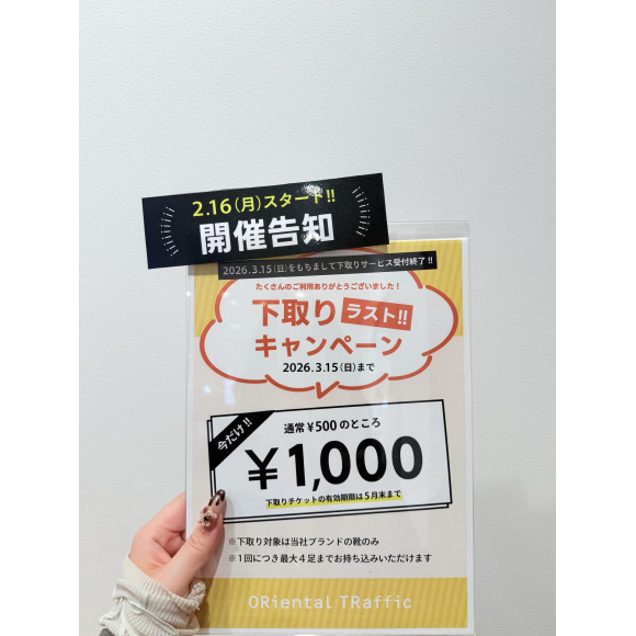 つきましてはラストキャンペーンとして当社ブランドの靴一足につき¥1.000 OFFクーポンをお渡しします!¥6,600(税込)につき1枚ご利用いただけます♪