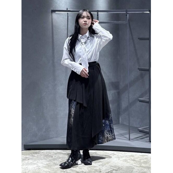 ⭐各アイテムのおすすめポイント  ̄ ̄ ̄ ̄ ̄ ̄ ̄ ̄ ̄ ̄ ̄ ̄ ̄ ̄ ̄ ̄ ̄ 【トップス】 □ネクタイに取り外し可能なパールのパーツが付いたデザインシャツ □やや張り感のある素材で、上品で高見えする一枚 □ゆとりはありつつも、スッキリと綺麗見えするシルエット □襟、ネクタイ、袖部分はレースデザインが施され、女性らしさをプラス □長めのカフスでトレンド感のある印象に