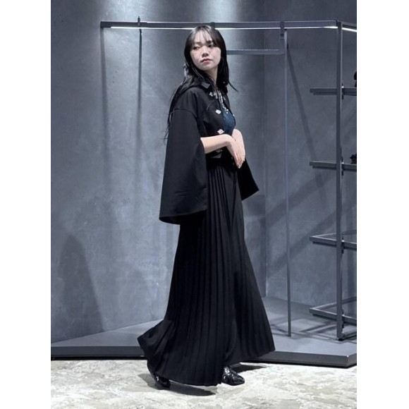 □細かいプリーツが軽やかな動きを作り、上品で女性らしい雰囲気に