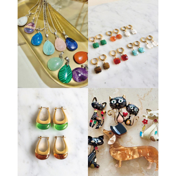 ⑤見ていても、身につけていても気分が上がる、ツヤと遊び心をプラスしてくれるアクセサリーコレクション♪ブローチや天然石のアクセサリーなど幅広いラインナップです!