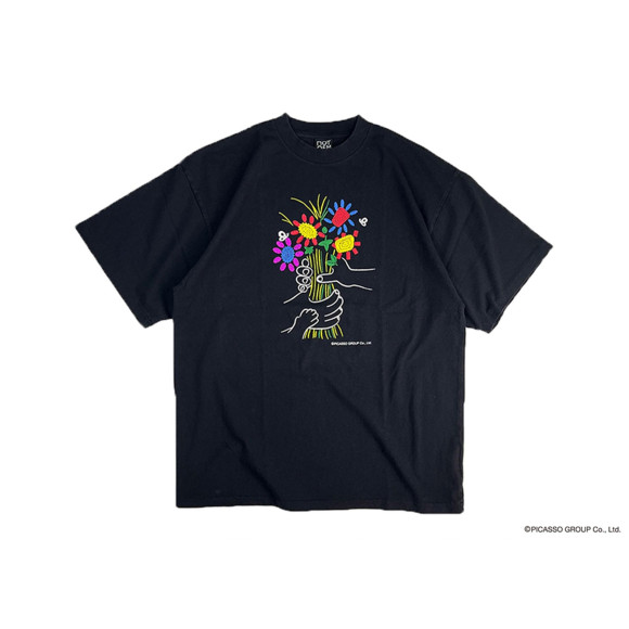 パブロ・ピカソが描いた「花束」のリデザインを、まるで刺繍のように発泡プリントで表現。 思わずプリントに触れたくなるような立体感のある仕上がりとなる。 Detail 80‘s-90’sのアメリカ古着のTシャツを完全に再現したこだわりのビンテージ仕様 -リブは存在感ある太めのシングルステッチ -袖と裾の縫製は天地縫い -絶妙な古着感を出すために、あえて ピグメント(顔料)加工にはせずに 製品反応染めにてウォッシュ加工 ※天地縫いについて 現在では天地縫いの縫製ミシンは使われることはかなり少なくなっていて、ミシン自体を所持されている縫製工場さんが少ないです。扱える熟練の縫製職人さんも激減してきているのもあり、技術的に未熟な方が天地縫い始末の縫製をする場合は表に出るステッチの巾にバラツキが出たり、縫製が出来ていない状態の目飛びを起こしてやすくなります。 始めと終わりをきれいに縫製するのは非常に難しく気を使わなければなりません。ですが、NOTOEMでは徹底的に仕様にはこだわり、手間を惜しまずこだわり抜いて天地縫いにしております。 Spec Material:Cotton 100% 6.2oz オープンエンド糸