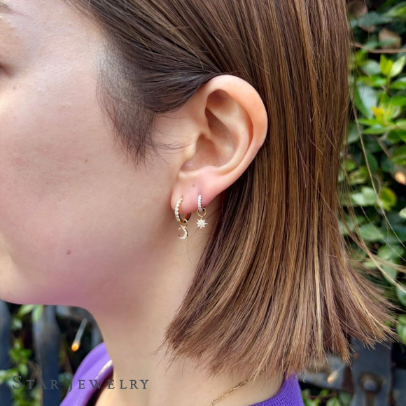 天体モチーフにダイヤモンドを敷き詰めたK18素材のチャームは、顔周りを上品に華やかせてくれます。