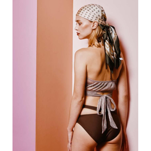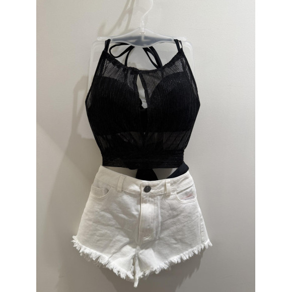 今回ご紹介する商品は、透け感のあるラメ素材を使用したトップス付き水着!