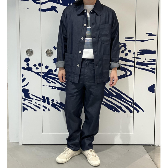 昨日ご紹介のワークジャケットと同素材を使用した新作シャンブレーイージーパンツ。