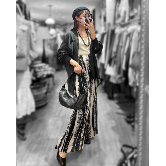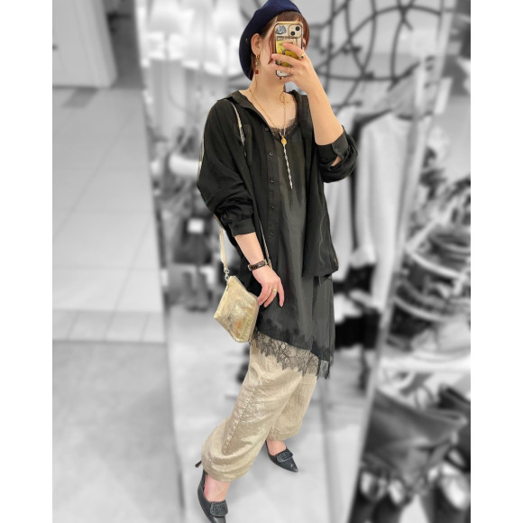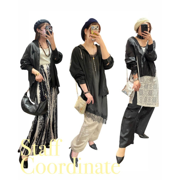 春の黒は、軽さをどう出すかがポイント。ツヤや光沢がある素材を選んだり、透け感のあるシアー素材を選ぶことで、透明感をプラスすることができます。