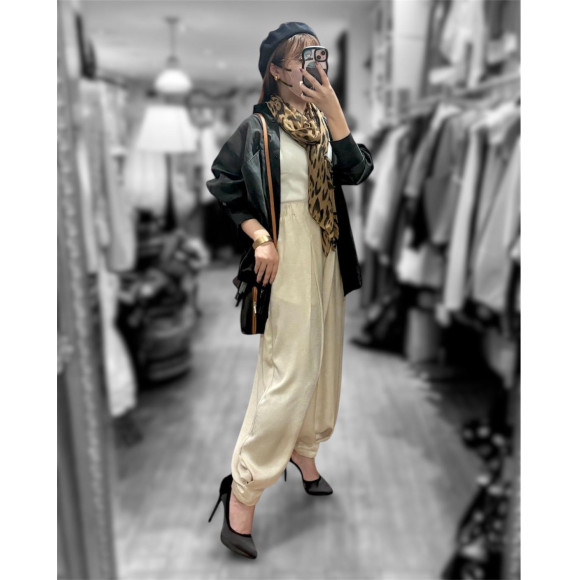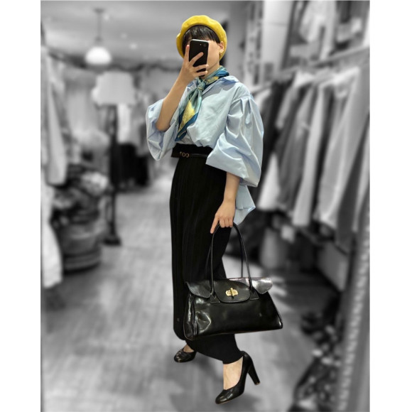 首元が少し寂しいな、というときには、左右のコーデのようにデコルテをスカーフで埋めるスタイリングがオススメ。長さのあるものは空気を含ませてふんわりと、小ぶりなものはキュッと結ぶと華やかさがプラスされます。