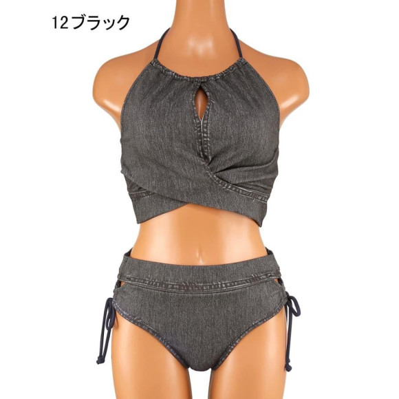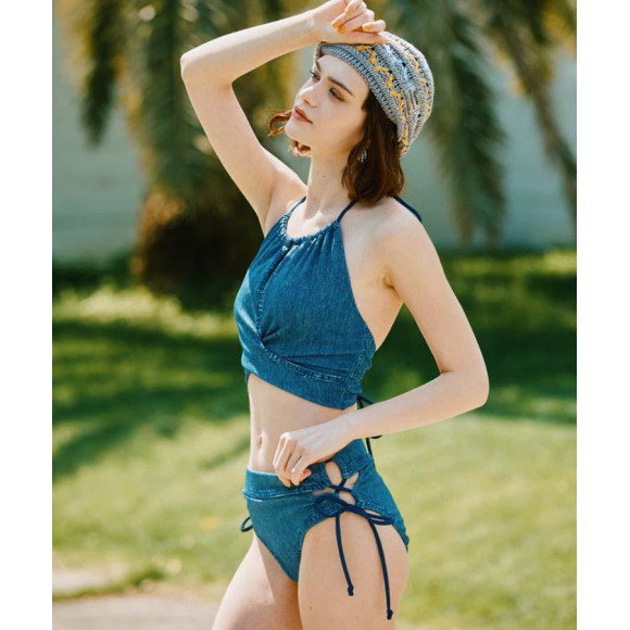 アウターライクなデニムの質感をプリントし、胸元のスリットとバックデザインでヘルシーな肌見せを演出☆