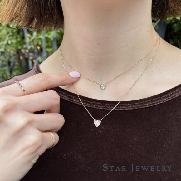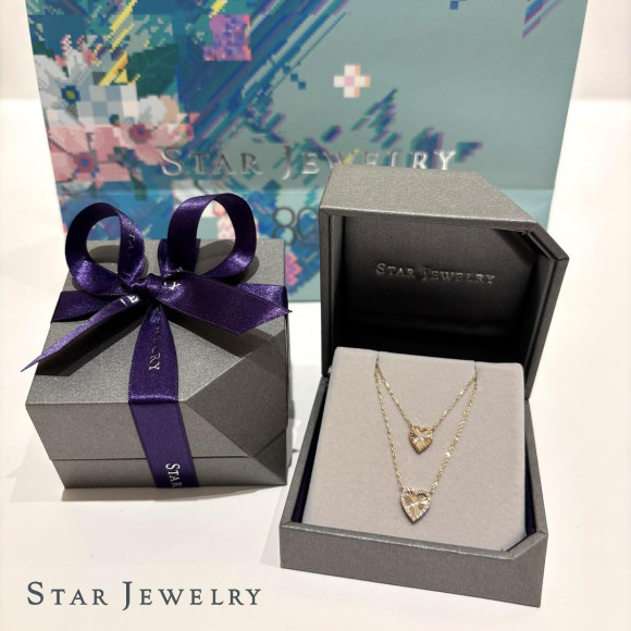 新作で登場したネックレスは、中心にダイヤモンドを添えたシンプルなデザインと、ハート周りを贅沢にダイヤモンドで囲んだラグジュアリーなタイプの2種展開です♡