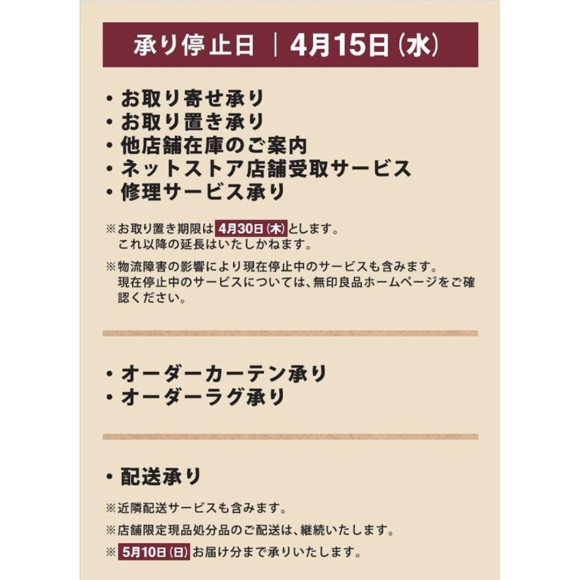 現在停止中のサービスについては、無印良品ホームページをご確認ください。