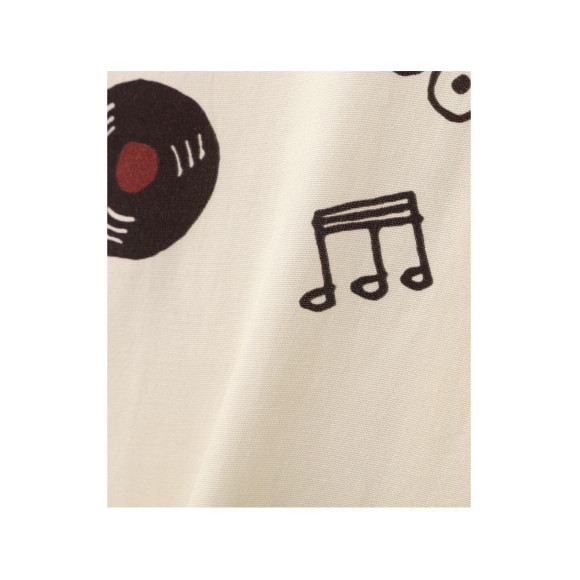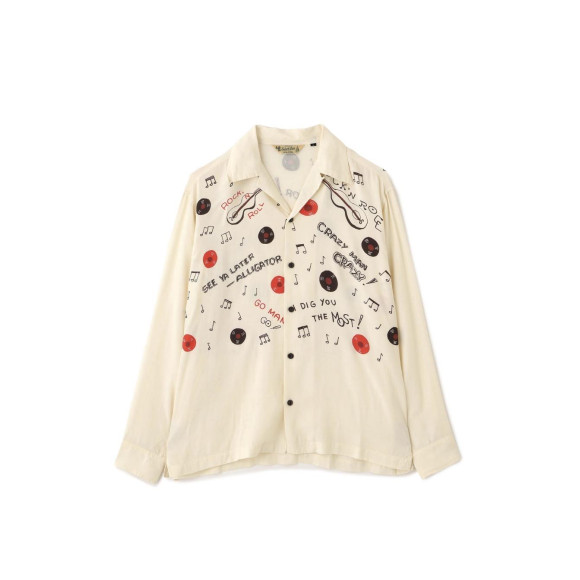 久しぶりに登場するロングスリーブレーヨンシャツ。 長袖仕様にあわせ、今回は落ち着いたトーンの中に遊び心を忍ばせました。 ロックンロールやロカビリーが誕生した1950年代。その時代の熱気を映し出すように、 大胆に配された音符に加え、レコードや楽器モチーフを組み込んだ“ロックンロール柄”を採用。 ヴィンテージ感と華やかさを兼ね備えた、大人の一枚に仕上がっています。 軽やかなレーヨン生地が生む清涼感と、長袖ならではの紫外線対策。 夏の日差しから肌を守りつつ、快適さと上品さを両立してくれるアイテムです。