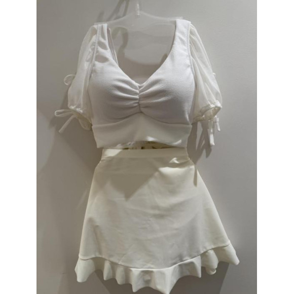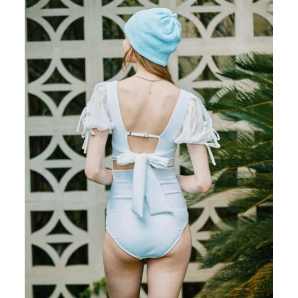透け感のあるシフォンのパフスリーブは丸みのあるボリューム感がポイント。