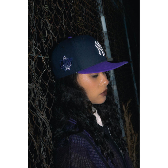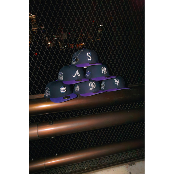 鉄板のネイビーボディに、鮮やかさと艶を感じさせるパープルをバイザーに組み合わせた〈SLOW JAM〉が登場。フロントロゴやサイドパッチにはシルバーを配し、夜の都会を思わせるクールさと色気を同時にまとったカラーリングに仕上がった。90年代R&Bを象徴する名盤からインスピレーションを受けたこのカラーリングは、当時の空気感やムードを現代のストリートに落とし込んだものとなった。ネイビーの落ち着きとパープルの妖艶さが絶妙に交差し、スタイリングに奥行きを与える。音楽とファッションが最も密接だった時代へのオマージュを感じさせる〈SLOW JAM〉を是非店頭でお試しください。