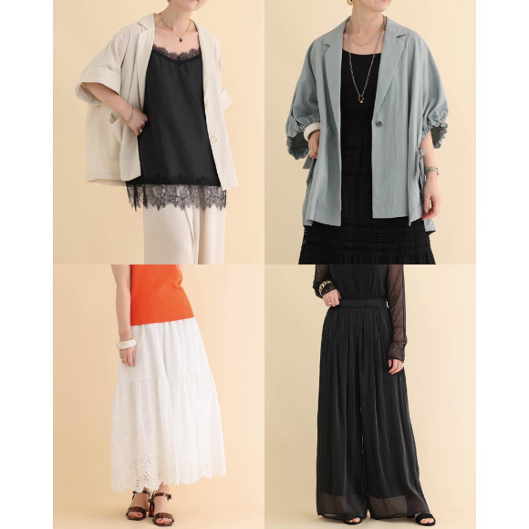 ②春の柔らかな陽射しが似合う、光と風を纏った新作達♪もうすぐやってくるGWに向けてのコーデ提案もさせていただいています!