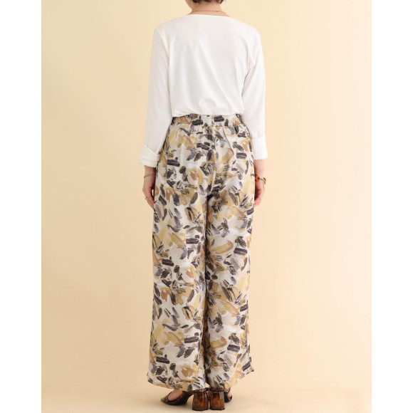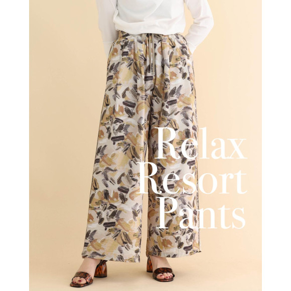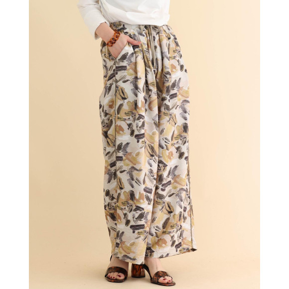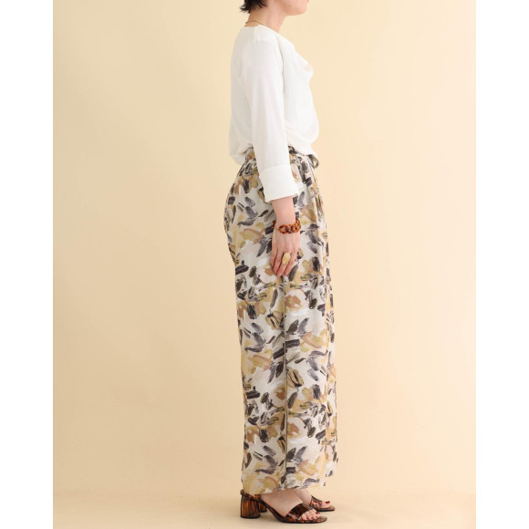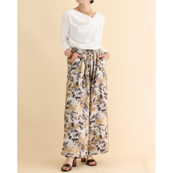 光と風が舞うロンド。印象派の絵画のように、優しく繊細なタッチの花柄を模したプリントのパンツです。表面にほんのりシワ加工を施し、柄がより立体的に見えるように生地を厳選しています。