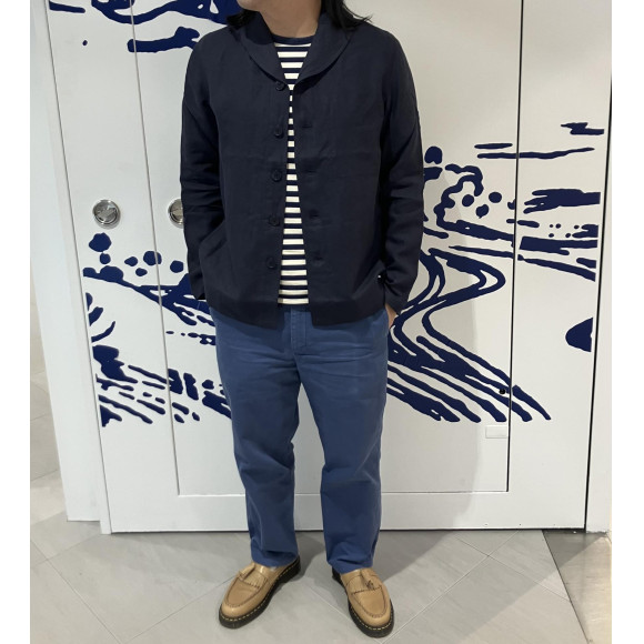 ミリタリージャケットから着想を得た襟の形がとってもオシャレな新型リネンジャケット。