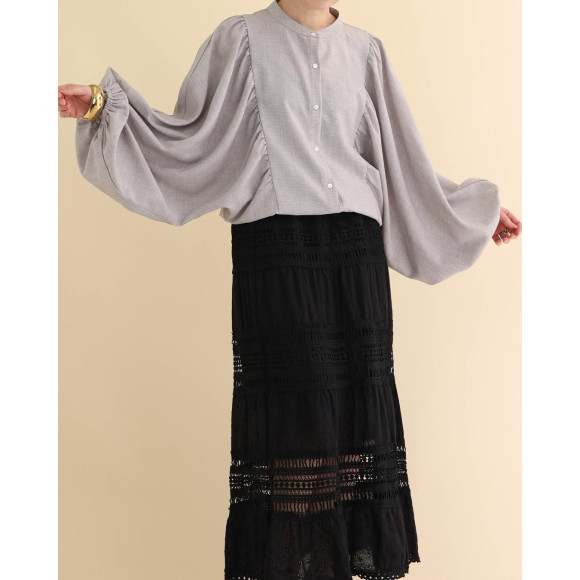 ふわりと夢心地。贅沢に生地を使用したドルマン袖が、まるでラベンダー畑を舞う蝶のように優美。オーセンティックなアイテムであるシャツに、『ギャザーの魔法』を一吹きして、ロマンティックなムードに仕上げました。