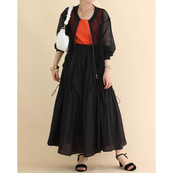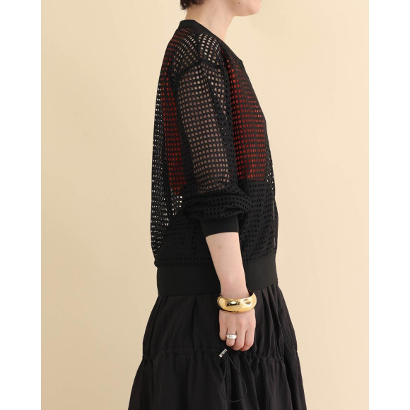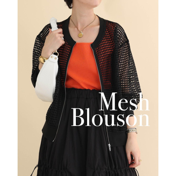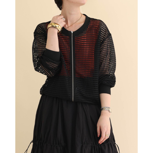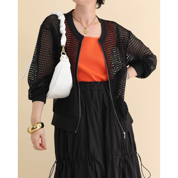 大きすぎず小さすぎない、程よいメッシュなので、インナーの色で遊ぶ楽しさと安心感を両立。ジップを閉めればトップスのようにもご活用いただけます。