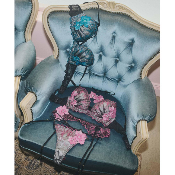 ・カップサイドはシンメトリーにあしらった大小の花モチーフが、ゴージャスにバストを彩る