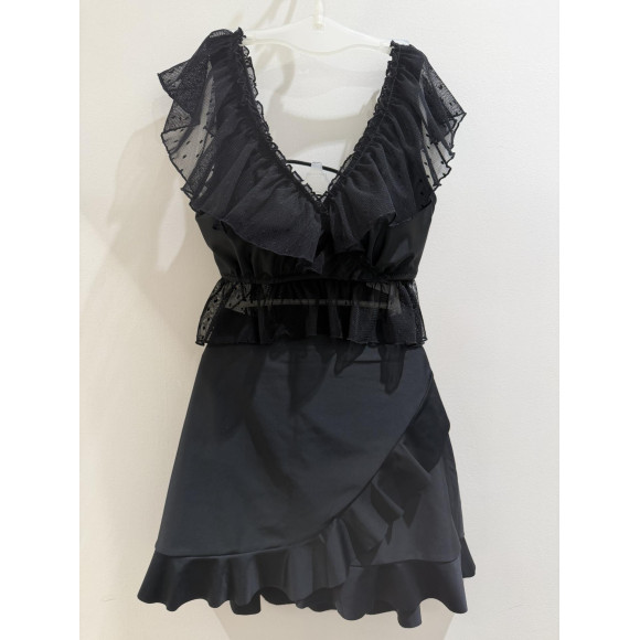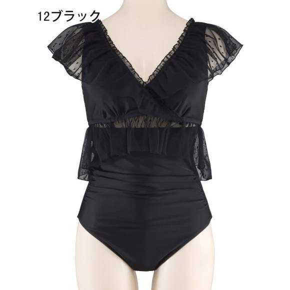 華やかに見せる大きめフリルは、ドット柄のチュールレースを使用。