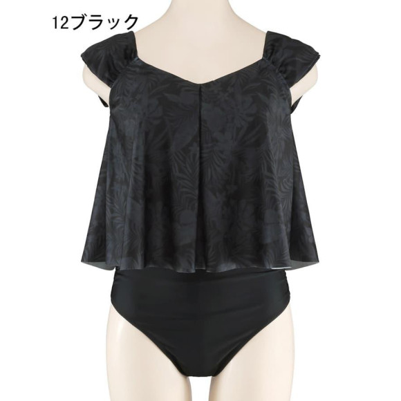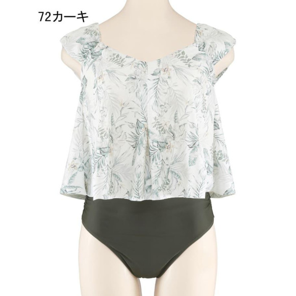 今回ご紹介する商品は、大人っぽい落ち着いたリーフプリントがポイントのワンピース風のセパレート水着。