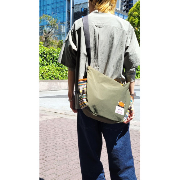 今回のコラボはクリエイティブな世界観と名高い技術を駆使してmaster-pieceのキーカラーでもあるイエローを入れて編み上げたオリジナル生地をサイドに使用したショルダーバッグ。