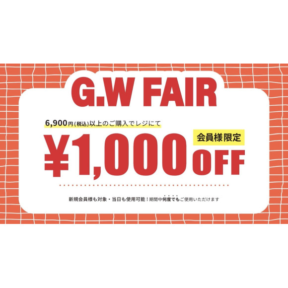 ☆GW Fair ☆アプリ会員様限定1000円OFF‼︎