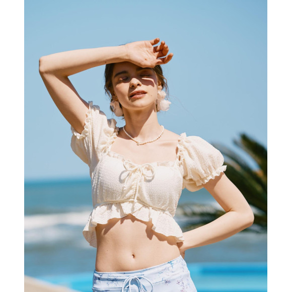 ギャザーフリルデザインもポイント。
