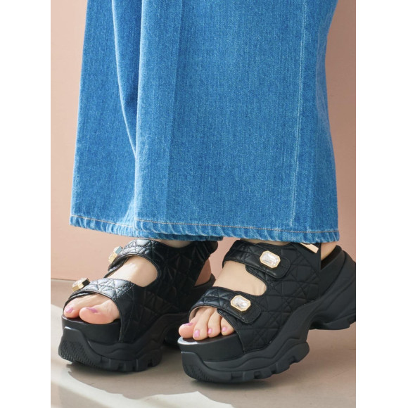 キルティング×ボリュームソールを組み合わせた大人カジュアルなサンダルです˚✧₊⁎甘すぎないデザインに甲ベルトのビジューでさりげなく華やかさをON♪